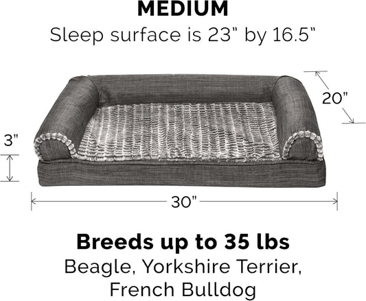 Orthopedic Dog Bed for Medium/Small Dogs W/ Removable Bolsters & Washable Cover, for Dogs up to 35 Lbs - Luxe Faux Fur & Performance Linen Sofa - Charcoal, Medium